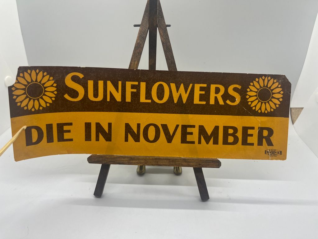 Description: 10"x3.25" Dry Gum Sticker Anti-Landon Sunflowers Die in November