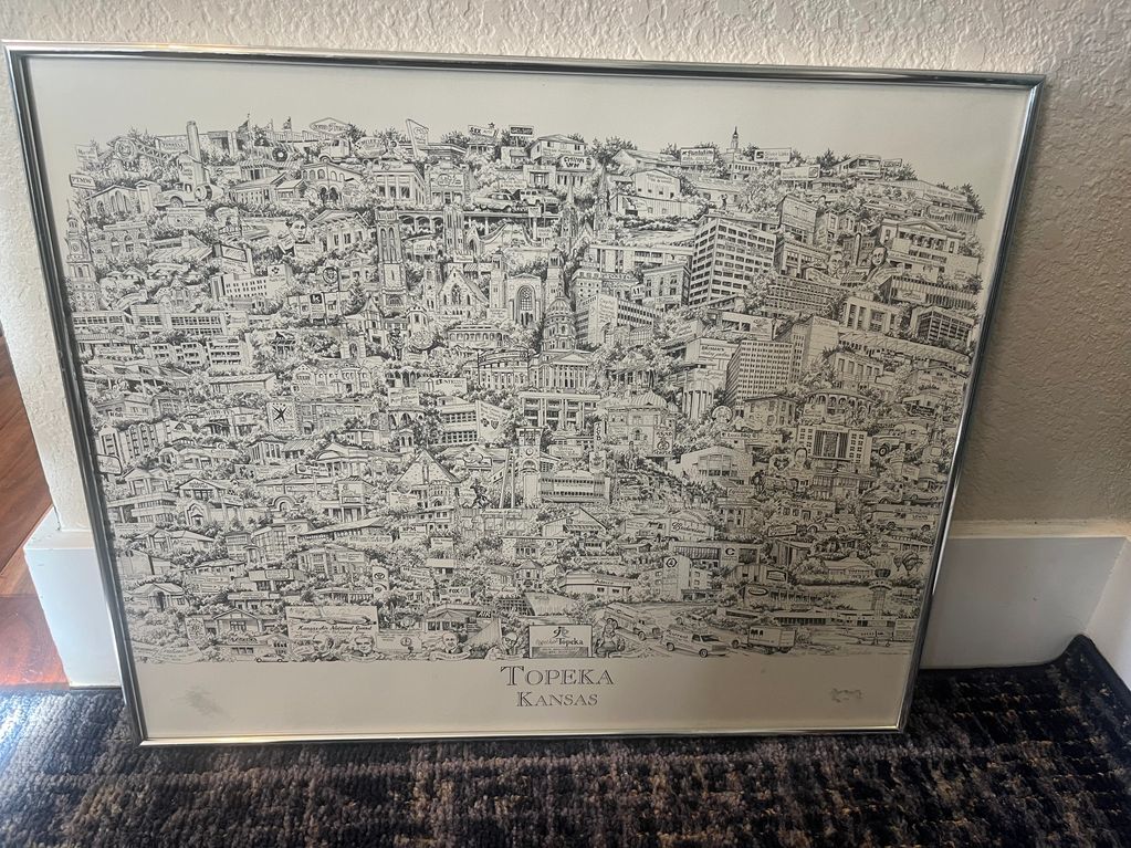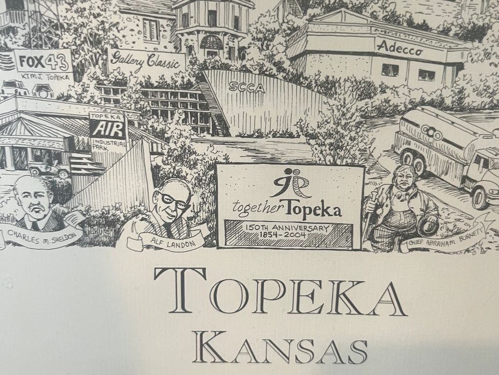 Description: 18"x22" Poster- 2004 150th Anniversary of Topeka, KS Line drawings of famous Topeka, including Alf Landon